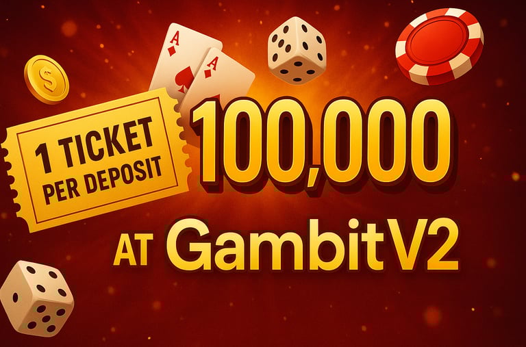 Deposit Funds: Every deposit you make on GAMBITV2 earns you one raffle ticket.